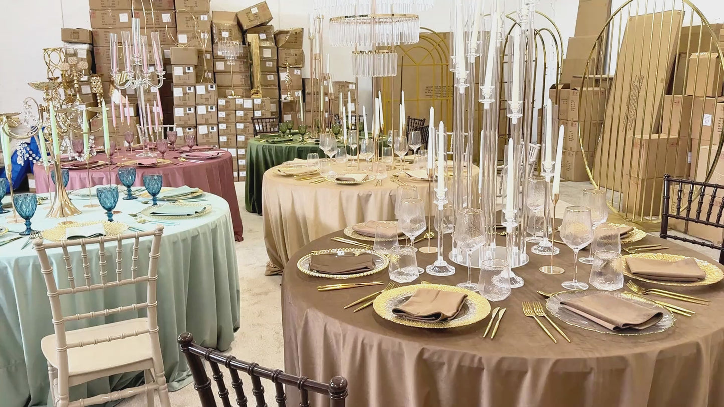 Suntem încântați să îți oferim elemente decorative de calitate pentru evenimentele tale speciale. Printre produsele noastre se numără farfurii suport elegante, tacâmuri rafinate, sfeșnice, suporturi pentru flori, scaune confortabile, texte neon vibrante, arcade metalice, panouri plusate și aranjamente din flori de mătase unice și superbe. Cu o experiență de 4 ani în domeniul decorurilor pentru evenimente, ne asigurăm că fiecare detaliu este perfect. Toate produsele noastre sunt prezentate cu poze reale, realizate chiar de noi, în cadrul evenimentelor organizate de echipa noastră.